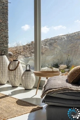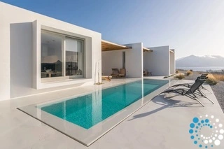 This new unique design villa is up to sarakiniko beach the famous place with the white rocks. Its 5 minutes distance from everything but also with unique privacy. Villa Temina has 3 double rooms with ensuites bathrooms and a huge living room/kitchen with another one bathroom, swimming pool and unique view