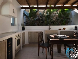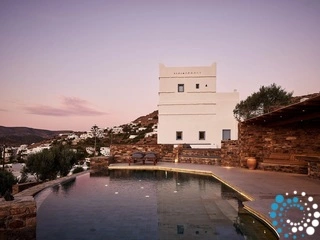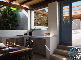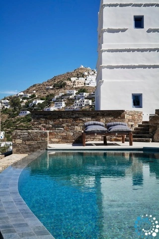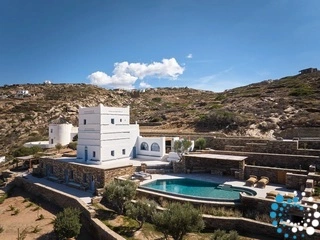 Set on a 1.7-acre estate on Ios Island, Greece, this private villa features a master bedroom on the top floor, a living area with sofa beds on the middle floor, a fully equipped kitchen, and three guest suites, each with its own en-suite bathroom. Guests can enjoy panoramic sunset views from the extensive outdoor terraces and relax by the private pool. With four bedrooms and five bathrooms in total, the villa provides complete privacy and a tranquil setting for an authentic island experience.