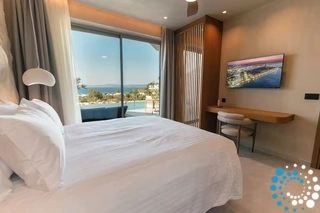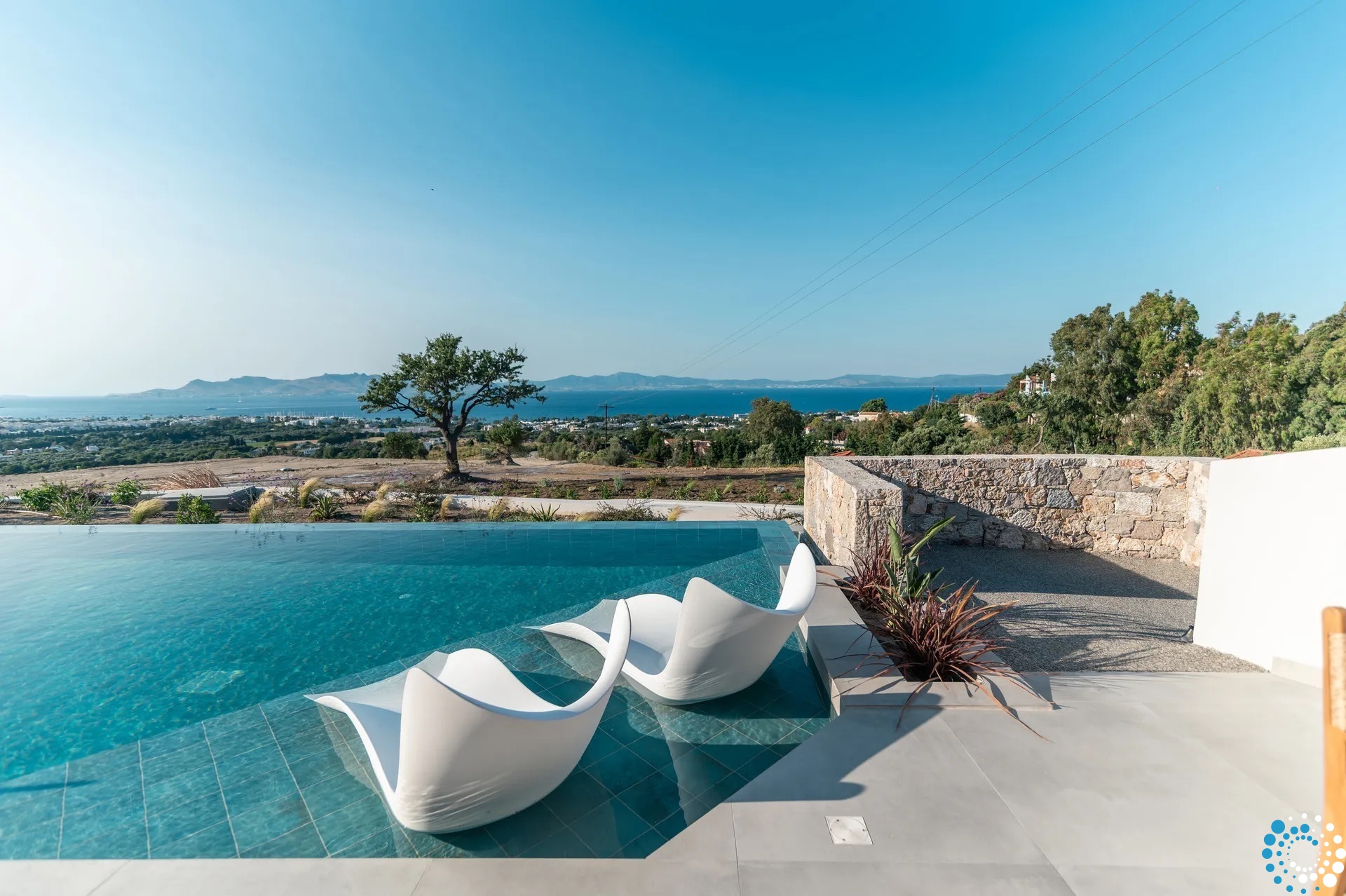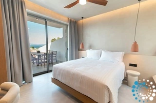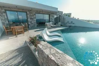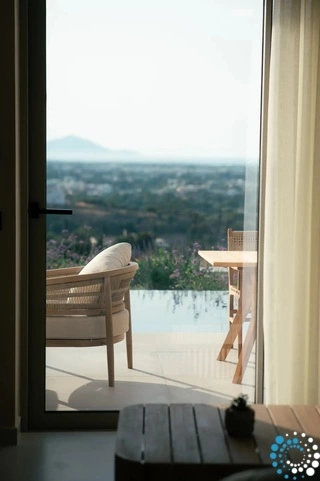 Villa Therma offers an elegant bedroom, a welcoming living space, and a fully equipped kitchen, providing everything needed for a relaxing stay. Outside, guests can enjoy a private swimming pool and a terrace with breathtaking, unobstructed views of the sea and surrounding mountains.