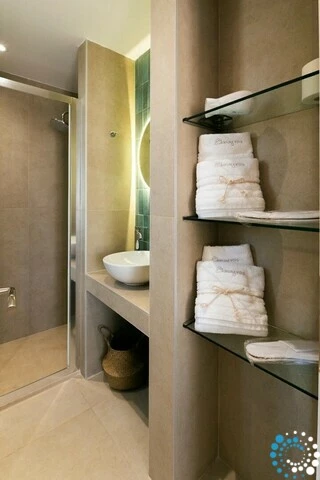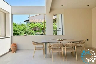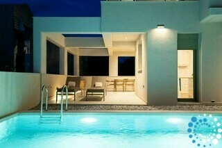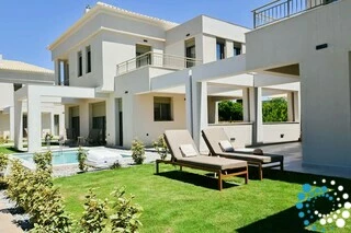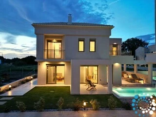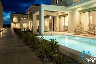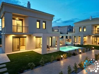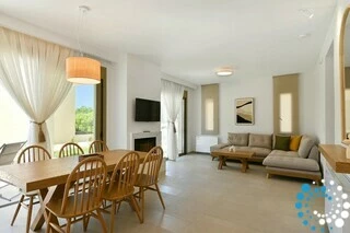The villa belongs to an exclusive complex of four newly built, elegantly designed maisonettes, carefully integrated into the surrounding landscape. Featuring earthy tones, sleek architectural lines, and natural materials, the design evokes a sense of calm, understated luxury.