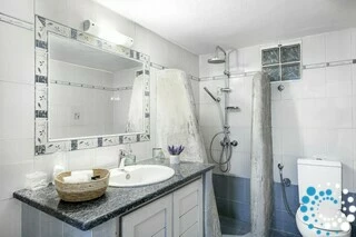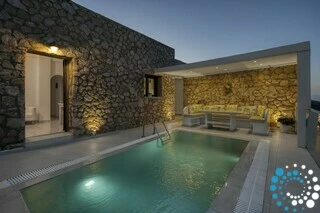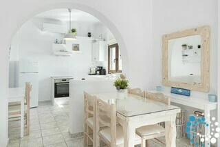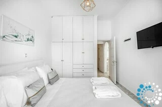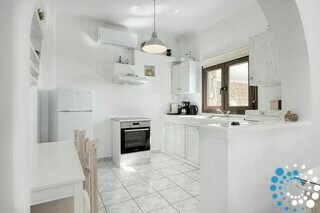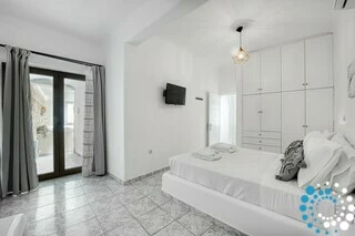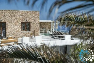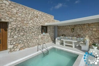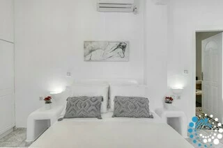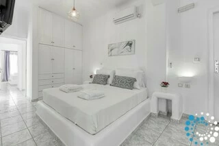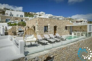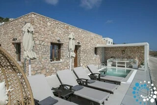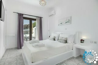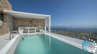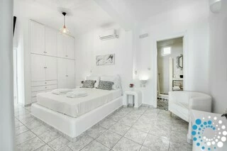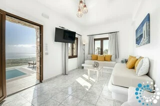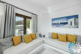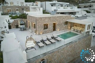 Indulge in absolute comfort and luxury, staying in a spacious environment in perfect alignment with the authentic Cycladic architecture. The villa features two bedrooms with queen size beds and a separate living room with two comfy sofa beds. There is also an open plan kitchen with all the essentials for your convenience. Two modern bathrooms with built-in showers complement the interior, while outdoors guests relax by the private pool and take in that lovely aura, soaking under the sun and overlooking the azure waters of the sea.