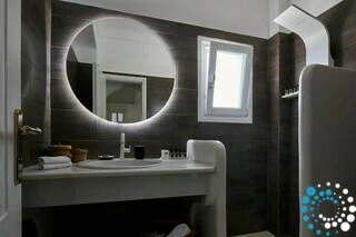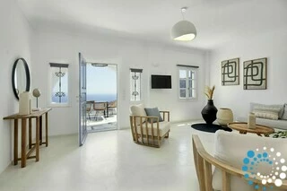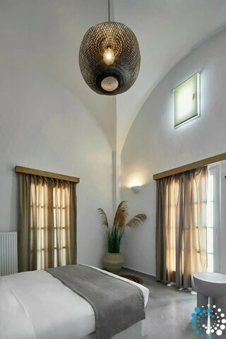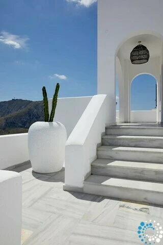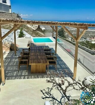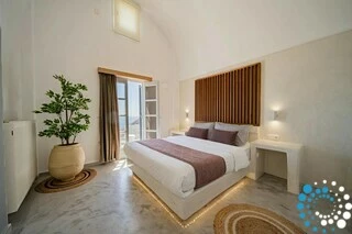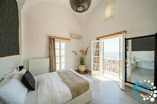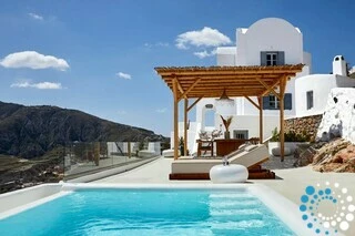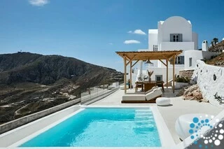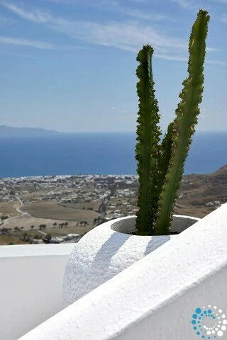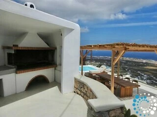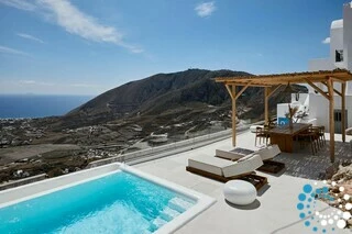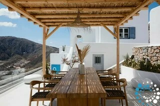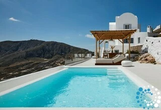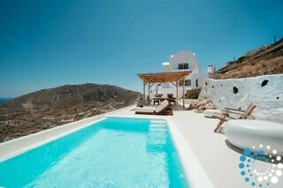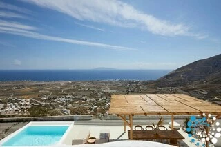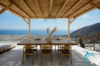 Located just 7 km from Fira, and a short drive from Thermes Beach and Santorini International Airport, the villa offers both convenience and seclusion.