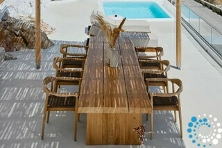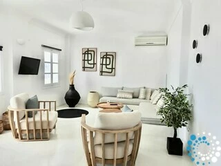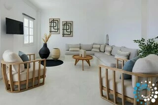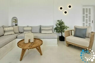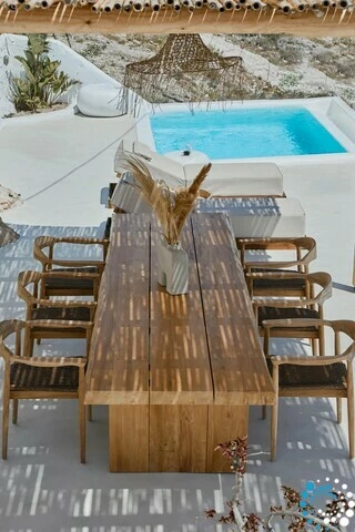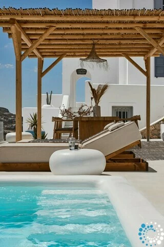 Villa Topaz seamlessly combines authentic Cycladic architecture with modern luxury. Its thoughtfully designed interiors feature soft pastel tones, elegant wooden details, and a light, boho-chic aesthetic that radiates warmth and sophistication. Outside, a private pool invites you to unwind under the Aegean sun, offering the perfect escape from the island’s lively crowds.