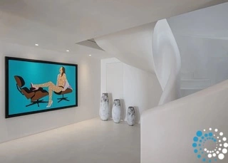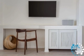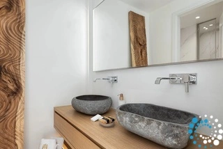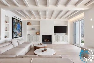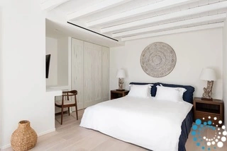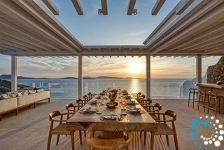 Perched across three levels, the 600sqm Villa Tormalina offers abundant space for up to 20 guests across 10 generously sized bedrooms, many of which feature uninterrupted sea views. Each room is tastefully furnished with bespoke pieces and includes its own private ensuite. The interiors showcase a sophisticated blend of crisp whites and natural textures, from handcrafted wicker wall art and original artwork to traditional stone walls and distinctive wooden accents, creating a serene yet refined retreat.