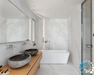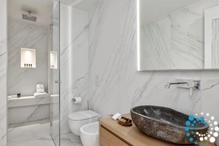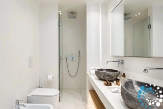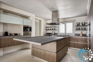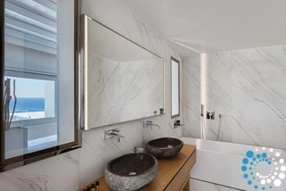 The lower level provides four additional bedrooms, each with an ensuite and a private kitchen, plus separate entrances—perfect for guests seeking extra privacy. This floor also boasts another pool and a spacious living area, offering a refreshing escape after a day spent under the sun.