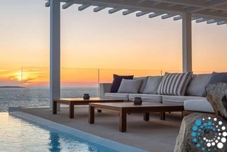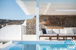For those wishing to explore, the pristine Ornos and Agios Ioannis beaches are nearby, and the vibrant Chora (Mykonos Town) is just a 15-minute drive away, offering a variety of fine dining, nightlife, and shopping experiences.