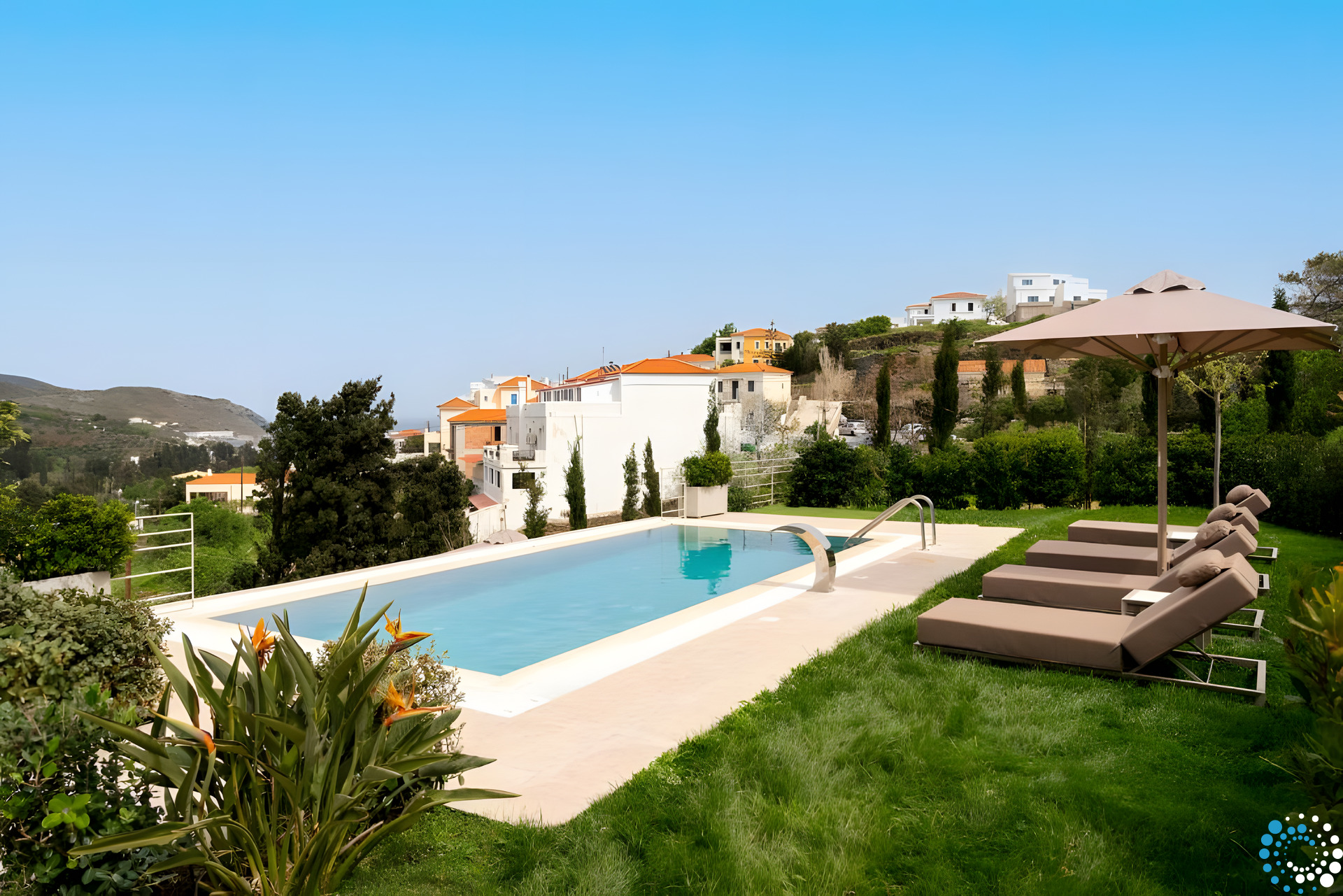 Inspired by the island’s ancient capital, Villa Velour is a stunning 90-square-meter retreat that embodies minimalist elegance and modern comfort on the island of Andros.