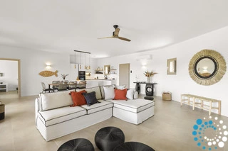 Daily housekeeping is provided, with towel service every second day and a mid-week change of bed linens. Pool and beach towels are included, and a baby cot can be arranged upon request at no extra charge. The villa is equipped with a smart TV, ceiling fans, a Bluetooth speaker, bathroom amenities, a hairdryer, a fully equipped kitchen, a water dispenser or cooler, premium coffee capsules, a dishwasher, and a washing machine. Air conditioning is available in all areas, and guests benefit from private parking, a private pool, Wi-Fi, and babysitting services upon request.