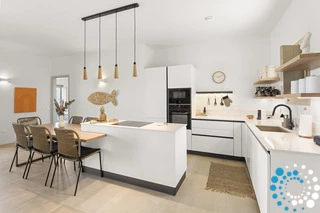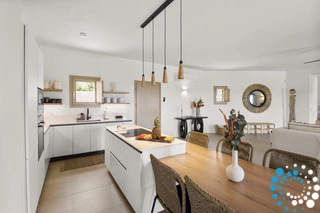 The villa includes three bedrooms, each with its own en-suite bathroom, along with a spacious kitchen and an inviting indoor living area. A large outdoor terrace and a private pool complete the setting, offering plenty of space to relax and enjoy the peaceful environment. The design is simple, tasteful, and thoughtfully created to ensure maximum comfort throughout your stay.