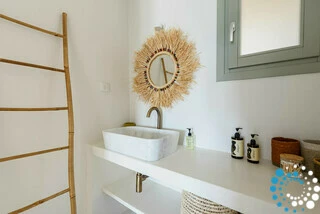 This stunning property features a main house and a separate guest house, connected by a charming inner courtyard adorned with a vibrant bougainvillea tree. The interiors have been tastefully restored, offering an exceptionally comfortable and inviting atmosphere, yet maintaining a sense of lightness that creates a truly calming effect.