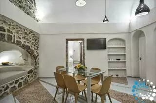 The villa is equipped with modern facilities to ensure a comfortable stay. There are two 43-inch smart TVs with Netflix, fast V-DSL internet at 50 Mbps, air conditioning and heating in all rooms, a refrigerator, dishwasher, oven, minibar, automatic espresso, cappuccino, and filter coffee machines, boiler, hairdryer, iron, safety deposit box, dry cleaning, laundry service, and a baby bed. Private Villa Volantra combines historic charm with contemporary luxury, creating an unforgettable Santorini experience.