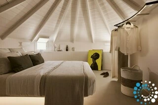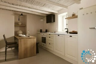 Windmill Karamitsos since 1859 unfolds across three levels, offering fully renovated and thoughtfully designed living spaces. On the ground floor, guests can enjoy a cozy sitting area along with a convenient WC. The upper levels host two bedrooms, each featuring a comfortable built-in double bed, connected by an internal staircase.