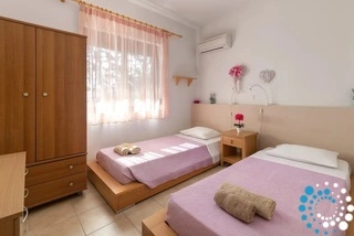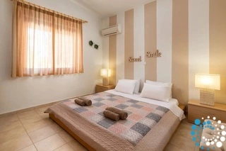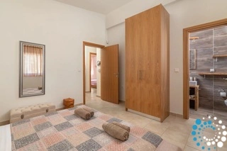 Villa Xantho offers a modern and comfortable retreat with three stylish bedrooms—two with double beds and one with a single bed. The villa has two bathrooms, each featuring a refreshing shower. The open-plan kitchen, adorned in warm tones, is fully equipped for any culinary adventure and seamlessly flows into a spacious living area. Here, guests can unwind in relaxing colors while enjoying the large screen TV. Free Wi-Fi is available throughout the villa, keeping you connected at all times.