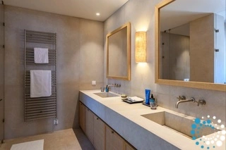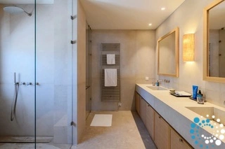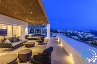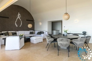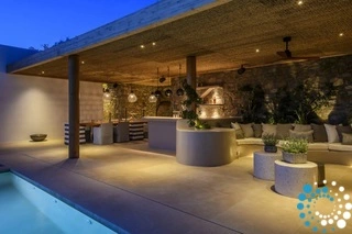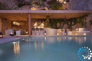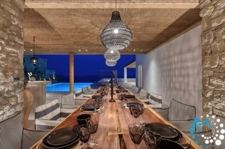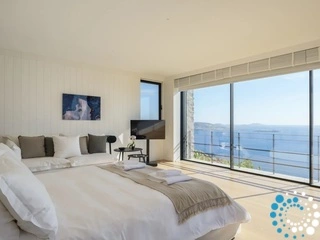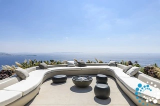 The pièce de résistance of this magnificent villa is the eighth bedroom, residing independently on a separate level, almost caressing the sea's azure surface. Emerging from this suite leads to a circular lounge featuring an outdoor fireplace, positioned ideally for unbeatable views of the cruise ships navigating their way, leaving guests breathless with the undeniable sensation of luxurious island living.
