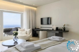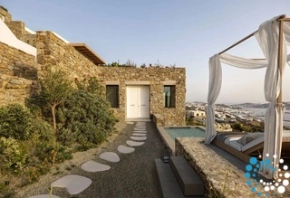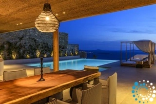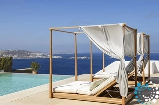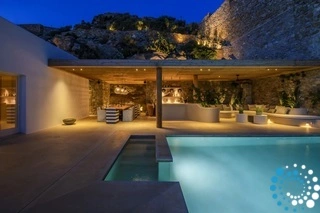 As dusk settles, Villa Zephyros truly comes to life. Relax on plush daybeds as you watch the silver moon rise in the cobalt sky and the sparkling lights of Mykonos Town painting a breathtaking scene that embodies the very essence of Greek elegance. Whether you're soaking in the azure beauty of the Aegean Sea or relishing the plush comforts of the villa, Silver Breeze promises a luxurious experience that's as timeless as it's captivating. Silver Breeze is more than just a luxurious place to stay; it's an experience where the magic of Mykonos is captured in every corner, creating a unique idyllic retreat.