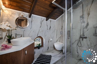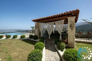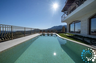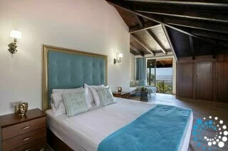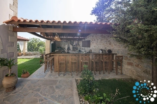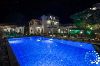 Villa Thesoro is a three-story villa with a total living area of 400 m² and accommodates up to 12 guests in existing beds, with space for 5 additional guests on sofa beds. It features open living areas, a fully equipped kitchen, and multiple bedrooms with ensuite bathrooms. The outdoor area includes a heated private swimming pool, a fully equipped kitchen, a large dining table for up to 20 guests, a barbecue area with charcoal and gas grills, and a pergola-shaded dining space. The spacious terrace is perfect for yoga, meditation, or simply enjoying the serene surroundings.